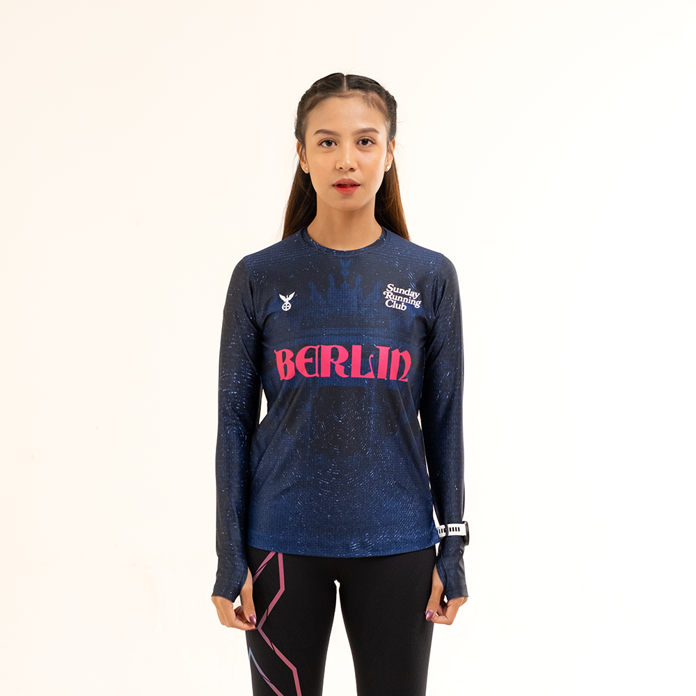 World Major Marathon reinterpreted in more specific ways; we brought fresh elements into this WM BERLIN release. Featured fast absorbing sweat, lightweight running jersey, 100% guaranteed to keep you comfortable in long sleeves women fit.